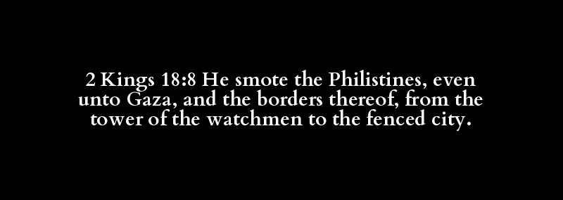 2 Kings 18:8 He smote the Philistines, even unto Gaza, and the borders thereof, from the tower of the watchmen to the fenced city.
