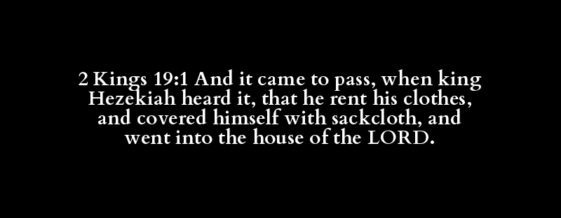 2 Kings 19:1 And it came to pass, when king Hezekiah heard it, that he rent his clothes, and covered himself with sackcloth, and went into the house of the LORD.