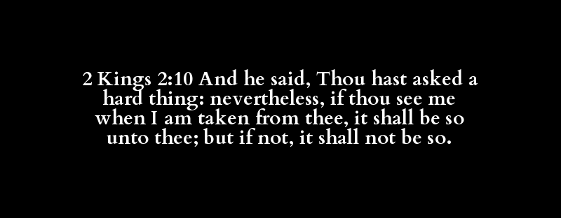 2 Kings 2:10 And he said, Thou hast asked a hard thing: nevertheless, if thou see me when I am taken from thee, it shall be so unto thee; but if not, it shall not be so.