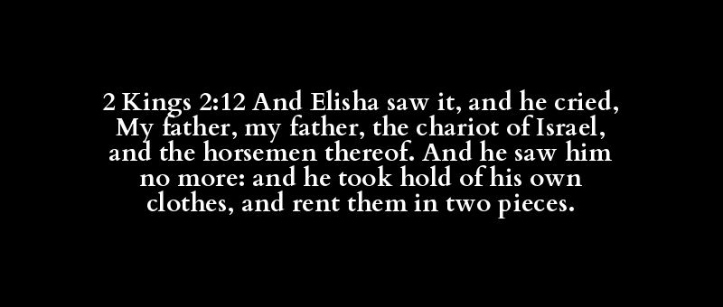 2 Kings 2:12 And Elisha saw it, and he cried, My father, my father, the chariot of Israel, and the horsemen thereof. And he saw him no more: and he took hold of his own clothes, and rent them in two pieces.