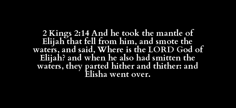 2 Kings 2:14 And he took the mantle of Elijah that fell from him, and smote the waters, and said, Where is the LORD God of Elijah? and when he also had smitten the waters, they parted hither and thither: and Elisha went over.