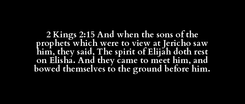 2 Kings 2:15 And when the sons of the prophets which were to view at Jericho saw him, they said, The spirit of Elijah doth rest on Elisha. And they came to meet him, and bowed themselves to the ground before him.