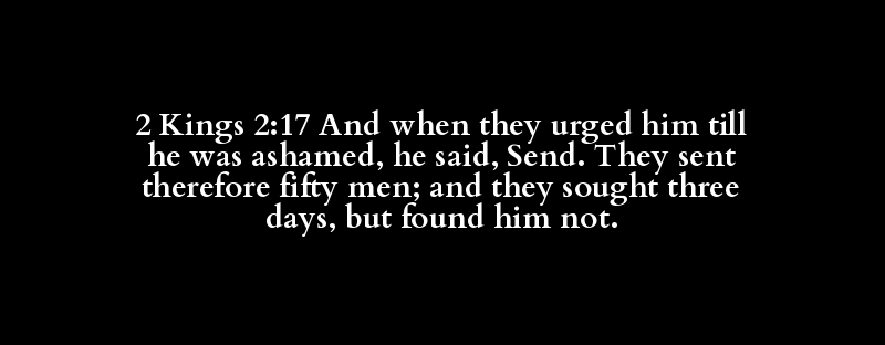 2 Kings 2:17 And when they urged him till he was ashamed, he said, Send. They sent therefore fifty men; and they sought three days, but found him not.