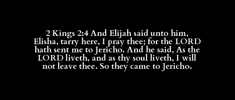 2 Kings 2:4 And Elijah said unto him, Elisha, tarry here, I pray thee; for the LORD hath sent me to Jericho. And he said, As the LORD liveth, and as thy soul liveth, I will not leave thee. So they came to Jericho.