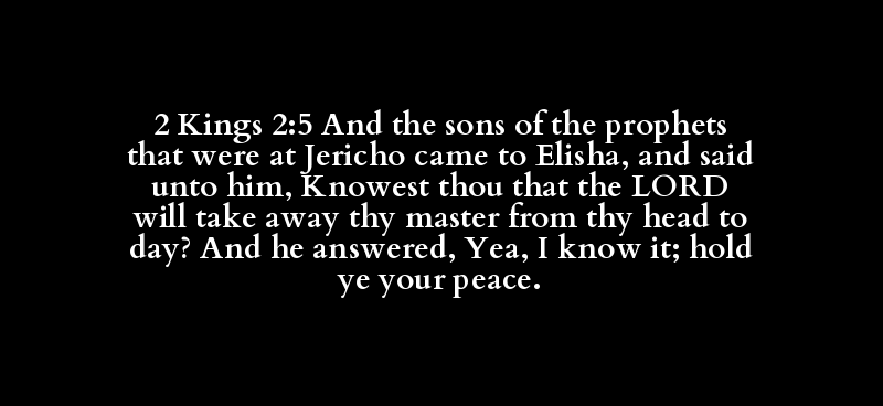 2 Kings 2:5 And the sons of the prophets that were at Jericho came to Elisha, and said unto him, Knowest thou that the LORD will take away thy master from thy head to day? And he answered, Yea, I know it; hold ye your peace.