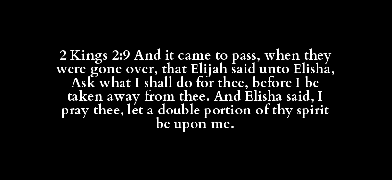 2 Kings 2:9 And it came to pass, when they were gone over, that Elijah said unto Elisha, Ask what I shall do for thee, before I be taken away from thee. And Elisha said, I pray thee, let a double portion of thy spirit be upon me.
