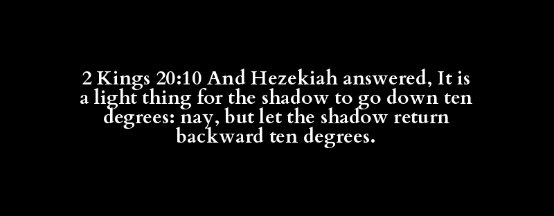 2 Kings 20:10 And Hezekiah answered, It is a light thing for the shadow to go down ten degrees: nay, but let the shadow return backward ten degrees.