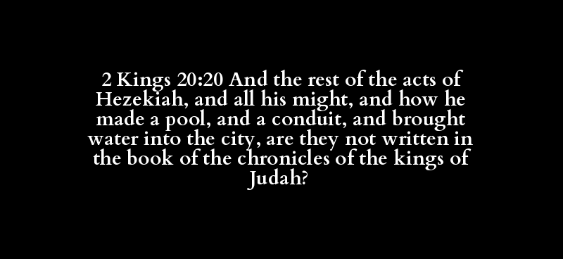 2 Kings 20:20 And the rest of the acts of Hezekiah, and all his might, and how he made a pool, and a conduit, and brought water into the city, are they not written in the book of the chronicles of the kings of Judah?