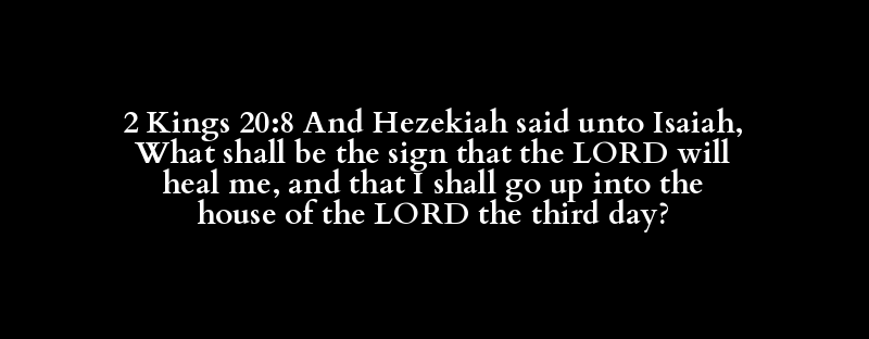 2 Kings 20:8 And Hezekiah said unto Isaiah, What shall be the sign that the LORD will heal me, and that I shall go up into the house of the LORD the third day?