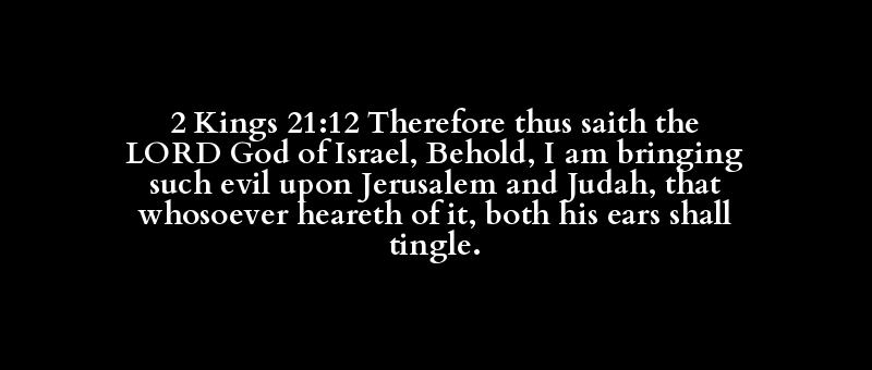 2 Kings 21:12 Therefore thus saith the LORD God of Israel, Behold, I am bringing such evil upon Jerusalem and Judah, that whosoever heareth of it, both his ears shall tingle.