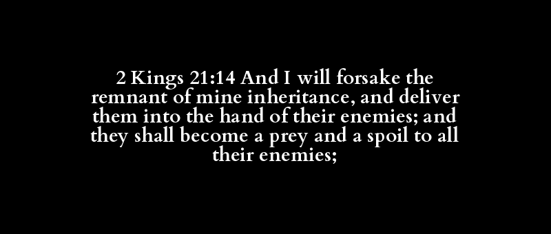 2 Kings 21:14 And I will forsake the remnant of mine inheritance, and deliver them into the hand of their enemies; and they shall become a prey and a spoil to all their enemies;