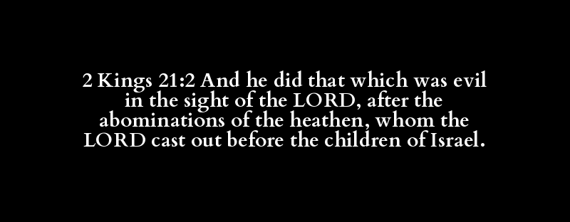 2 Kings 21:2 And he did that which was evil in the sight of the LORD, after the abominations of the heathen, whom the LORD cast out before the children of Israel.