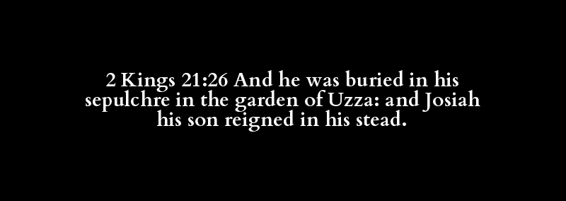 2 Kings 21:26 And he was buried in his sepulchre in the garden of Uzza: and Josiah his son reigned in his stead.