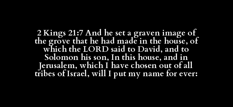 2 Kings 21:7 And he set a graven image of the grove that he had made in the house, of which the LORD said to David, and to Solomon his son, In this house, and in Jerusalem, which I have chosen out of all tribes of Israel, will I put my name for ever: