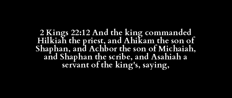 2 Kings 22:12 And the king commanded Hilkiah the priest, and Ahikam the son of Shaphan, and Achbor the son of Michaiah, and Shaphan the scribe, and Asahiah a servant of the king's, saying,