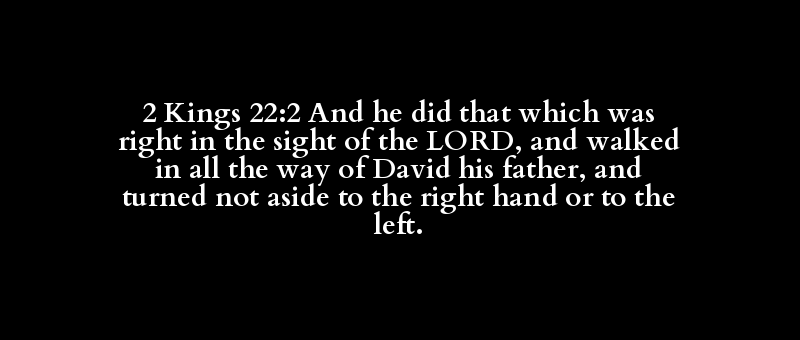 2 Kings 22:2 And he did that which was right in the sight of the LORD, and walked in all the way of David his father, and turned not aside to the right hand or to the left.