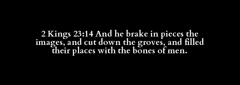 2 Kings 23:14 And he brake in pieces the images, and cut down the groves, and filled their places with the bones of men.