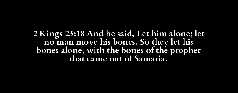 2 Kings 23:18 And he said, Let him alone; let no man move his bones. So they let his bones alone, with the bones of the prophet that came out of Samaria.