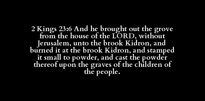 2 Kings 23:6 And he brought out the grove from the house of the LORD, without Jerusalem, unto the brook Kidron, and burned it at the brook Kidron, and stamped it small to powder, and cast the powder thereof upon the graves of the children of the people.