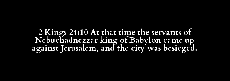 2 Kings 24:10 At that time the servants of Nebuchadnezzar king of Babylon came up against Jerusalem, and the city was besieged.