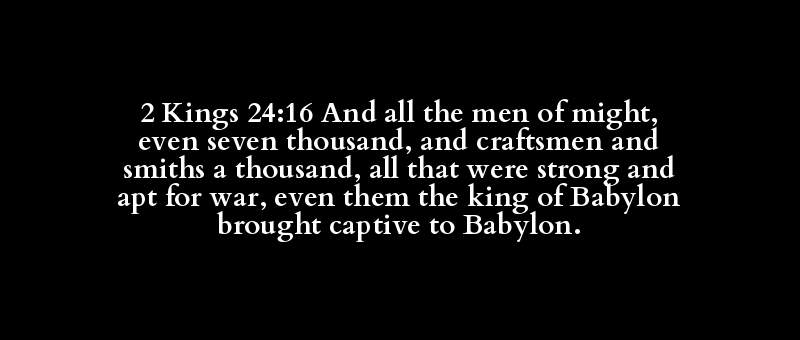 2 Kings 24:16 And all the men of might, even seven thousand, and craftsmen and smiths a thousand, all that were strong and apt for war, even them the king of Babylon brought captive to Babylon.