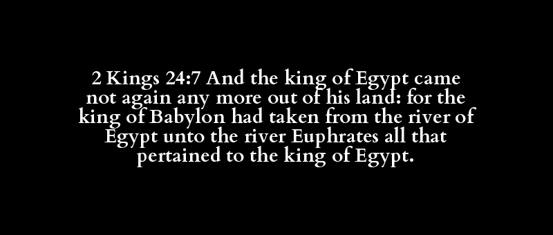 2 Kings 24:7 And the king of Egypt came not again any more out of his land: for the king of Babylon had taken from the river of Egypt unto the river Euphrates all that pertained to the king of Egypt.