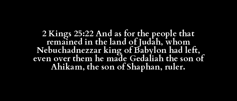 2 Kings 25:22 And as for the people that remained in the land of Judah, whom Nebuchadnezzar king of Babylon had left, even over them he made Gedaliah the son of Ahikam, the son of Shaphan, ruler.