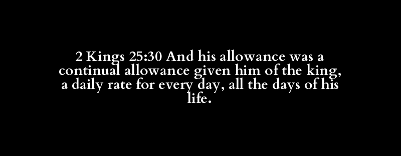 2 Kings 25:30 And his allowance was a continual allowance given him of the king, a daily rate for every day, all the days of his life.