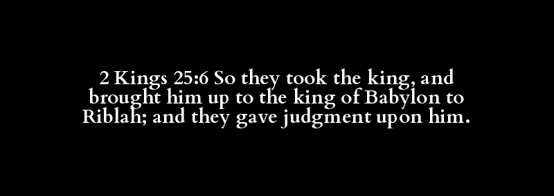2 Kings 25:6 So they took the king, and brought him up to the king of Babylon to Riblah; and they gave judgment upon him.