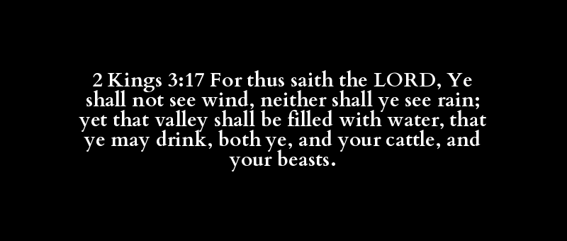 2 Kings 3:17 For thus saith the LORD, Ye shall not see wind, neither shall ye see rain; yet that valley shall be filled with water, that ye may drink, both ye, and your cattle, and your beasts.