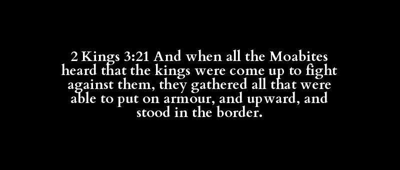 2 Kings 3:21 And when all the Moabites heard that the kings were come up to fight against them, they gathered all that were able to put on armour, and upward, and stood in the border.