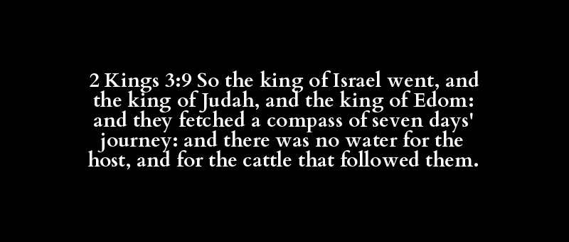 2 Kings 3:9 So the king of Israel went, and the king of Judah, and the king of Edom: and they fetched a compass of seven days' journey: and there was no water for the host, and for the cattle that followed them.