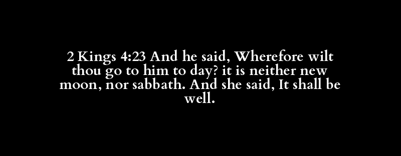 2 Kings 4:23 And he said, Wherefore wilt thou go to him to day? it is neither new moon, nor sabbath. And she said, It shall be well.