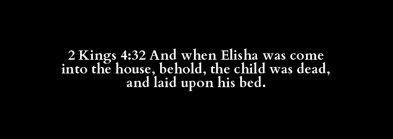 2 Kings 4:32 And when Elisha was come into the house, behold, the child was dead, and laid upon his bed.