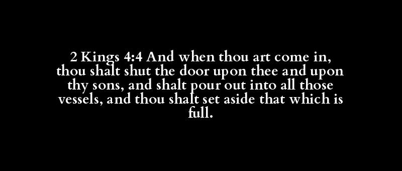 2 Kings 4:4 And when thou art come in, thou shalt shut the door upon thee and upon thy sons, and shalt pour out into all those vessels, and thou shalt set aside that which is full.