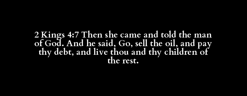 2 Kings 4:7 Then she came and told the man of God. And he said, Go, sell the oil, and pay thy debt, and live thou and thy children of the rest.