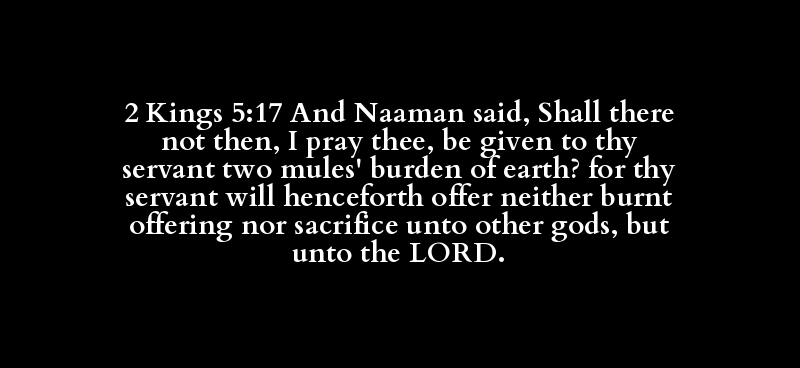 2 Kings 5:17 And Naaman said, Shall there not then, I pray thee, be given to thy servant two mules' burden of earth? for thy servant will henceforth offer neither burnt offering nor sacrifice unto other gods, but unto the LORD.