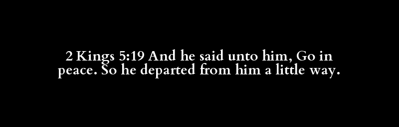 2 Kings 5:19 And he said unto him, Go in peace. So he departed from him a little way.