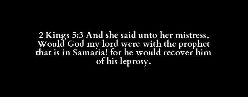 2 Kings 5:3 And she said unto her mistress, Would God my lord were with the prophet that is in Samaria! for he would recover him of his leprosy.
