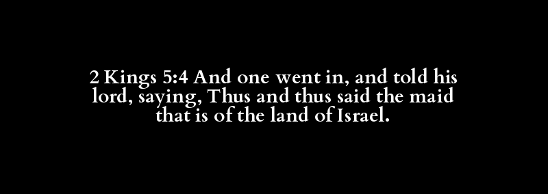 2 Kings 5:4 And one went in, and told his lord, saying, Thus and thus said the maid that is of the land of Israel.