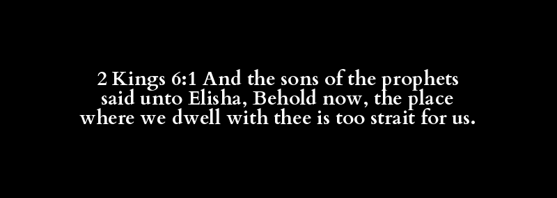 2 Kings 6:1 And the sons of the prophets said unto Elisha, Behold now, the place where we dwell with thee is too strait for us.