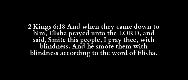 2 Kings 6:18 And when they came down to him, Elisha prayed unto the LORD, and said, Smite this people, I pray thee, with blindness. And he smote them with blindness according to the word of Elisha.