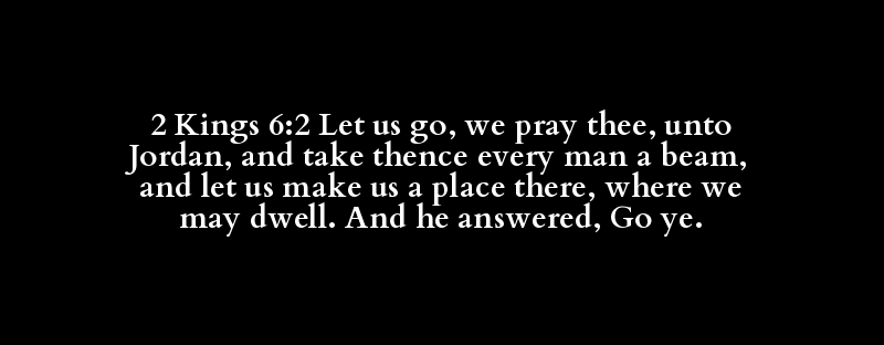 2 Kings 6:2 Let us go, we pray thee, unto Jordan, and take thence every man a beam, and let us make us a place there, where we may dwell. And he answered, Go ye.