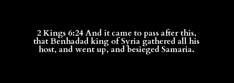 2 Kings 6:24 And it came to pass after this, that Benhadad king of Syria gathered all his host, and went up, and besieged Samaria.