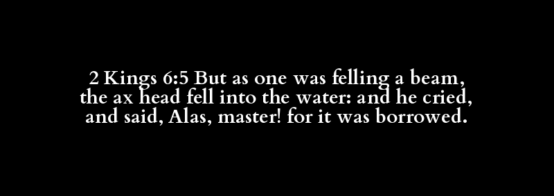 2 Kings 6:5 But as one was felling a beam, the ax head fell into the water: and he cried, and said, Alas, master! for it was borrowed.