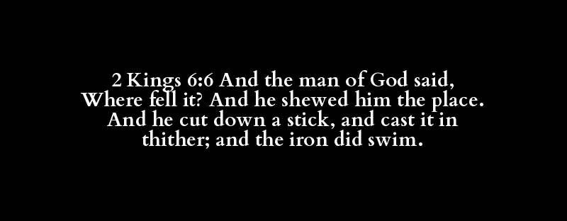2 Kings 6:6 And the man of God said, Where fell it? And he shewed him the place. And he cut down a stick, and cast it in thither; and the iron did swim.