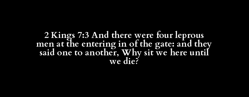 2 Kings 7:3 And there were four leprous men at the entering in of the gate: and they said one to another, Why sit we here until we die?