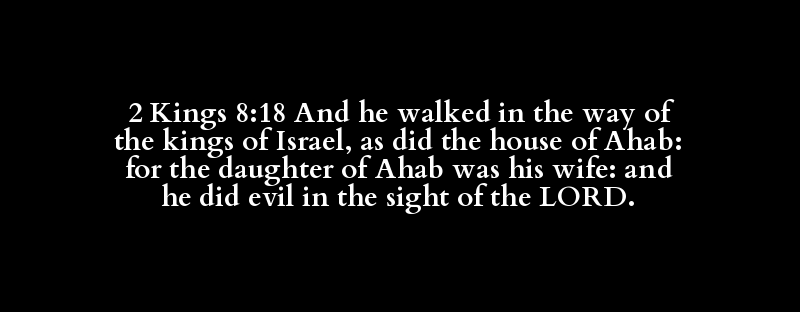 2 Kings 8:18 And he walked in the way of the kings of Israel, as did the house of Ahab: for the daughter of Ahab was his wife: and he did evil in the sight of the LORD.