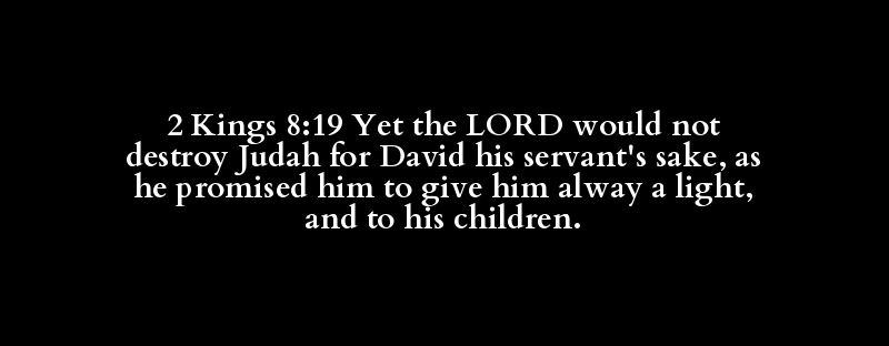 2 Kings 8:19 Yet the LORD would not destroy Judah for David his servant's sake, as he promised him to give him alway a light, and to his children.