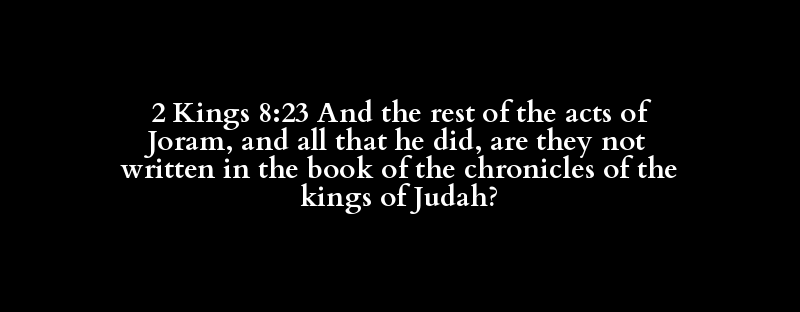 2 Kings 8:23 And the rest of the acts of Joram, and all that he did, are they not written in the book of the chronicles of the kings of Judah?